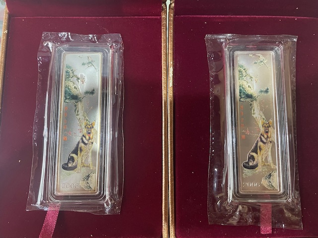 出2006年狗年50克银条两盒 原封未开 带盒带证书 外盒有点掉皮 两盒900元