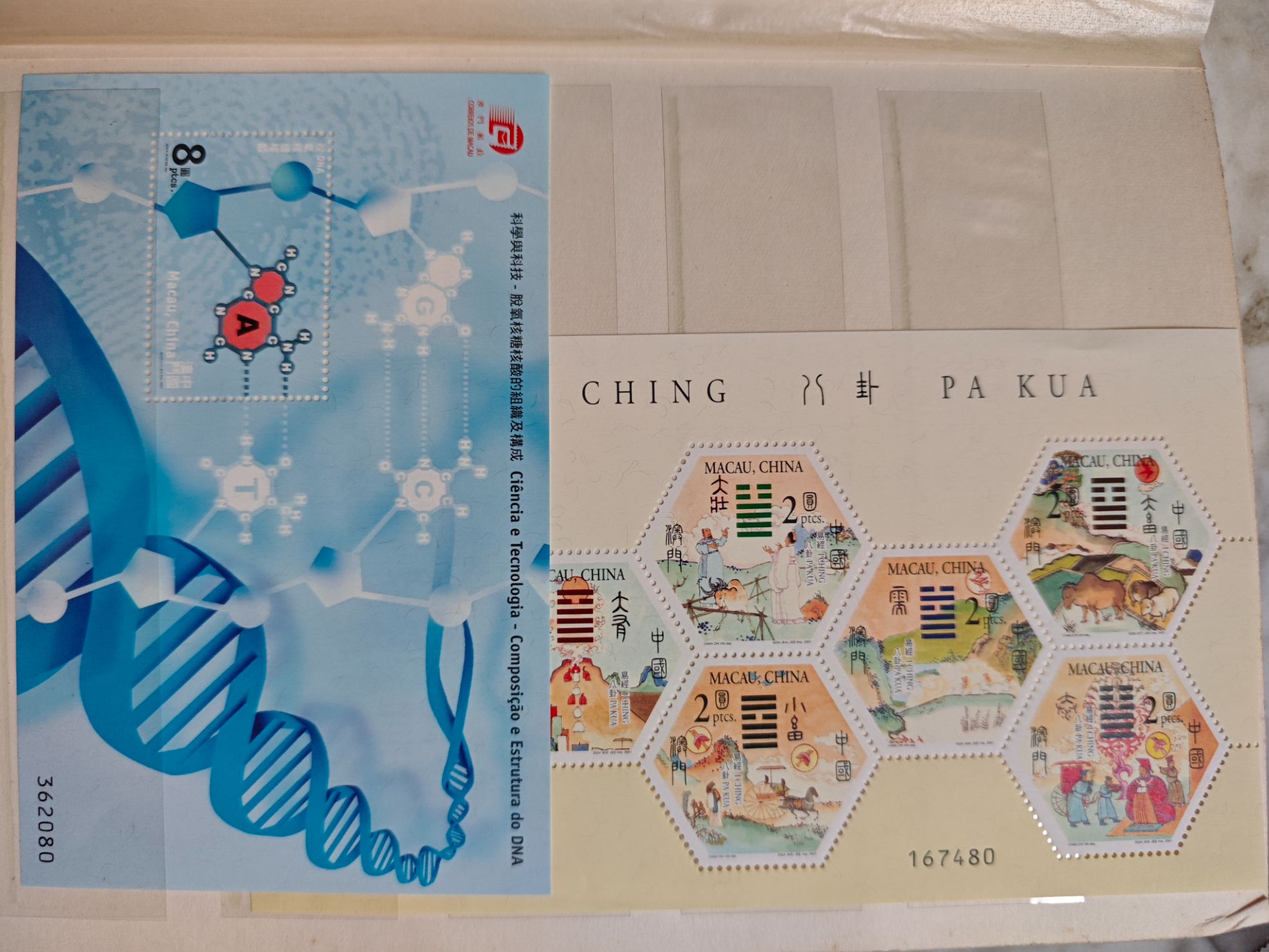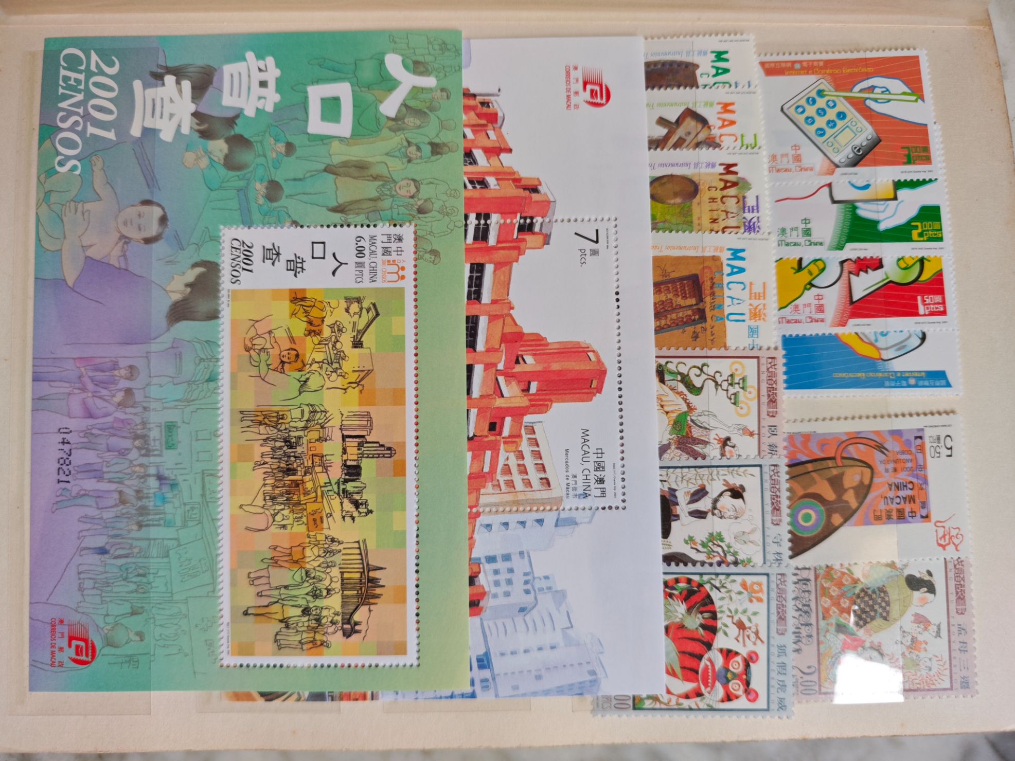 卖:2001年香港票面值172.6元X2组。2001年澳门票面值210元X2组。
