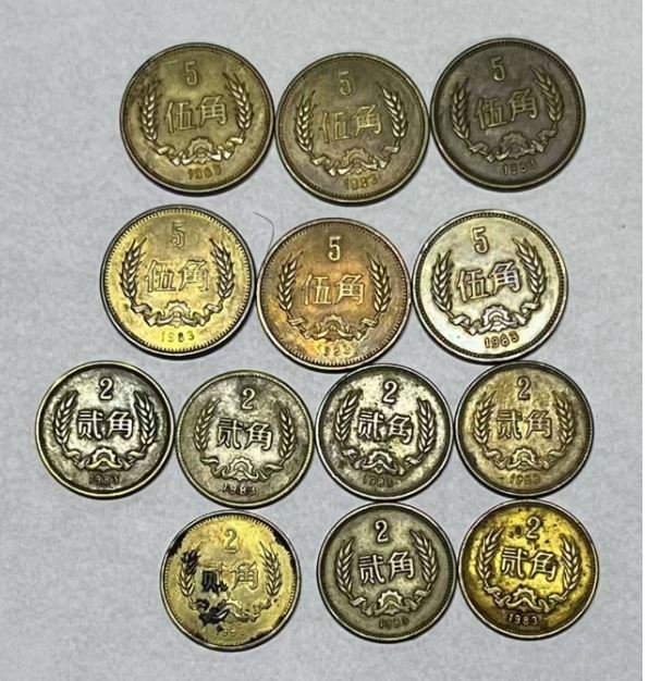 出83年五角6枚,两角7枚