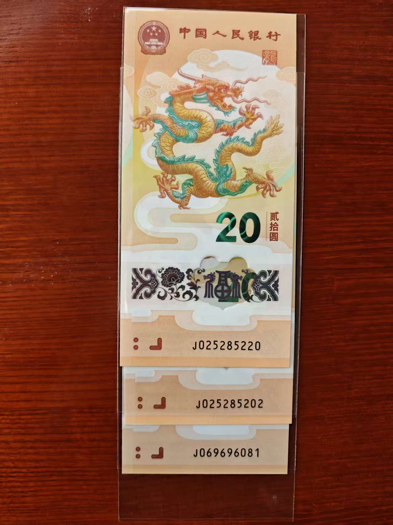 龙钞0258 倒置号共计3枚原票一手货