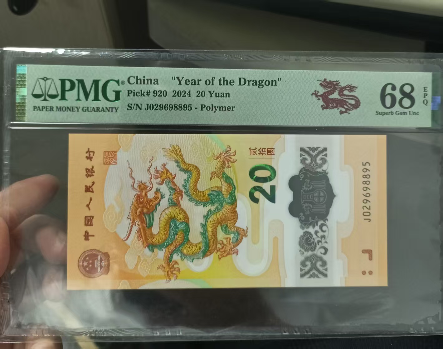 龙钞J029698895,P68分,满号,单2单5,6500元
