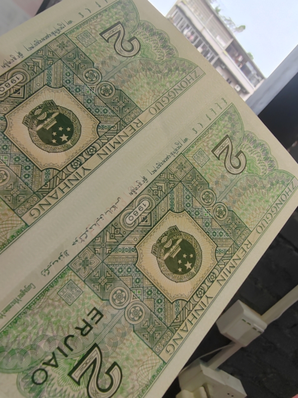 角币二连体对号,三张均有点小软折痕,售300元